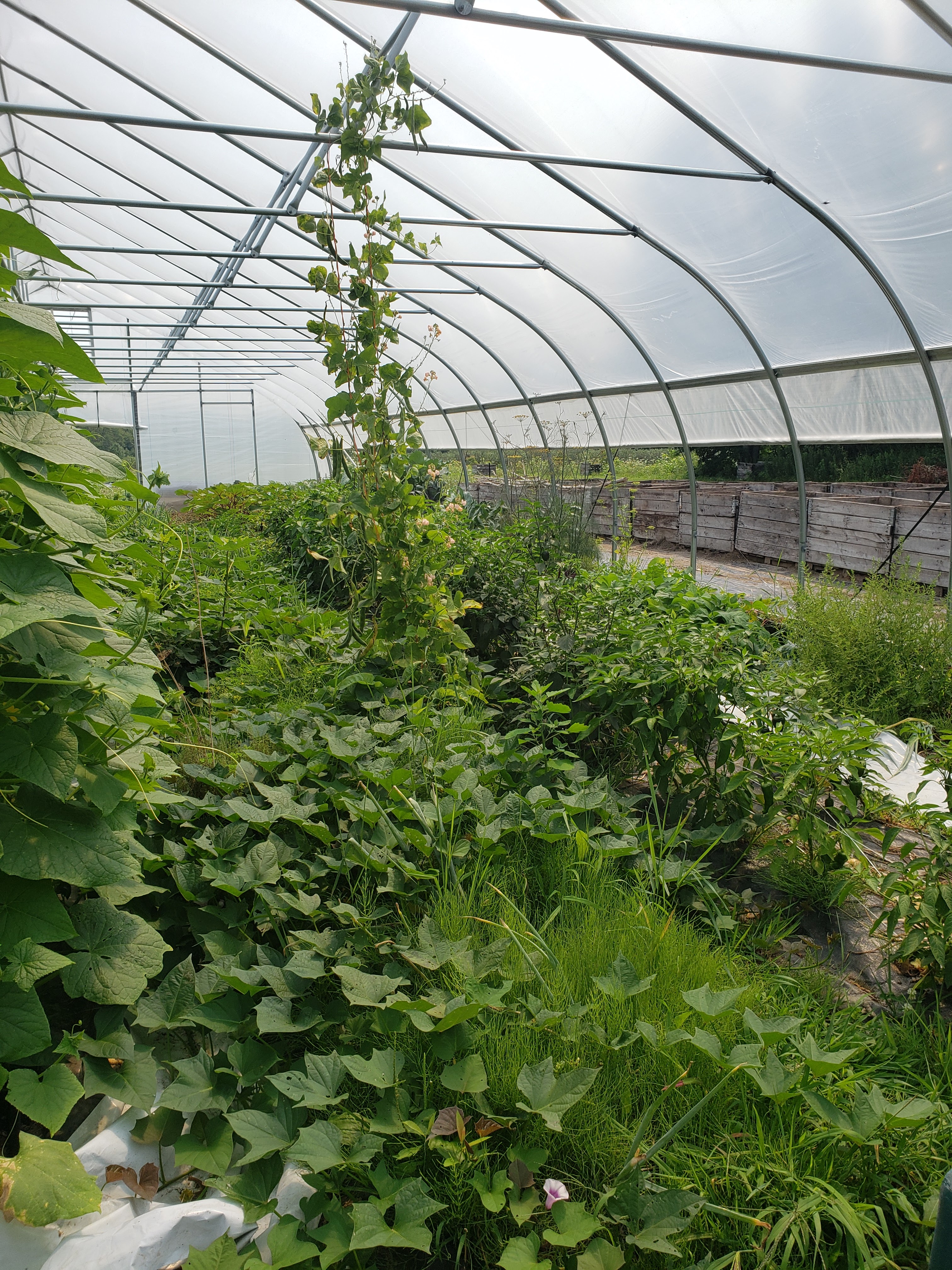 Bea is the all-around farm and house dog. She does it all…pest control in the hoophouse and garden, babysitting goslings, guarding and alerting to visitors, pulling a sled loaded with bags of bird food to the coop in January when I hurt my back, digging holes for planting and turning compost, keeping the rooster from sneaking up on me while collecting eggs (literally she has my back). She loves everyone, has endless energy, and wants to be included in the fun! When not running around the farm, Bea loves rally, agility, or anything that requires athleticism. At the end of the day, snuggles on the couch are her favorite.